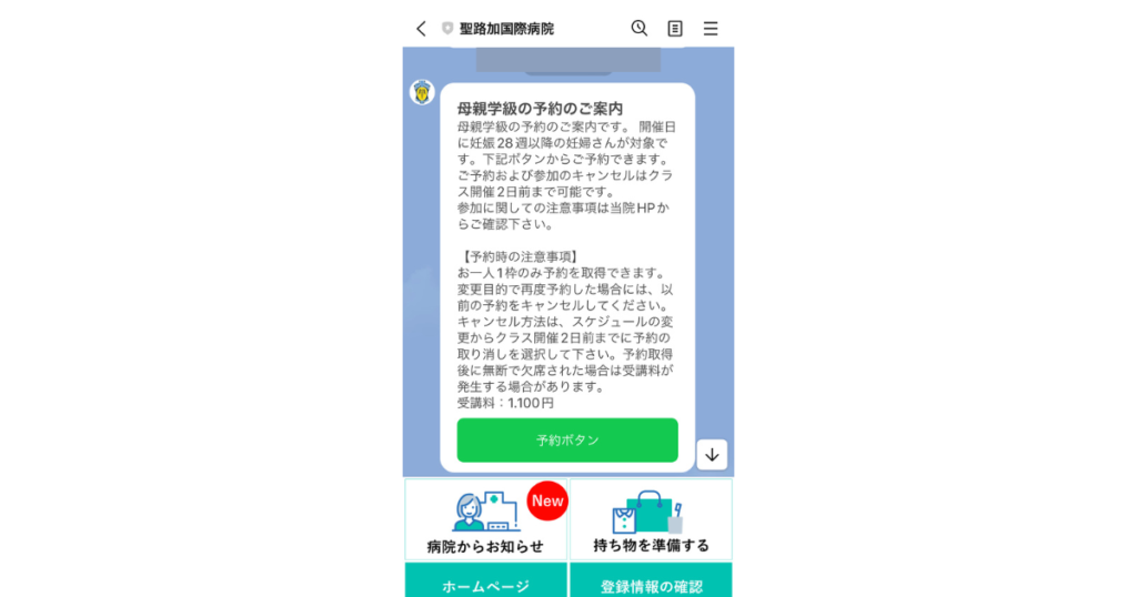 聖路加国際病院で分娩予約をしている妊婦さんは、初診の際に聖路加国際病院公式LINEの登録をします。